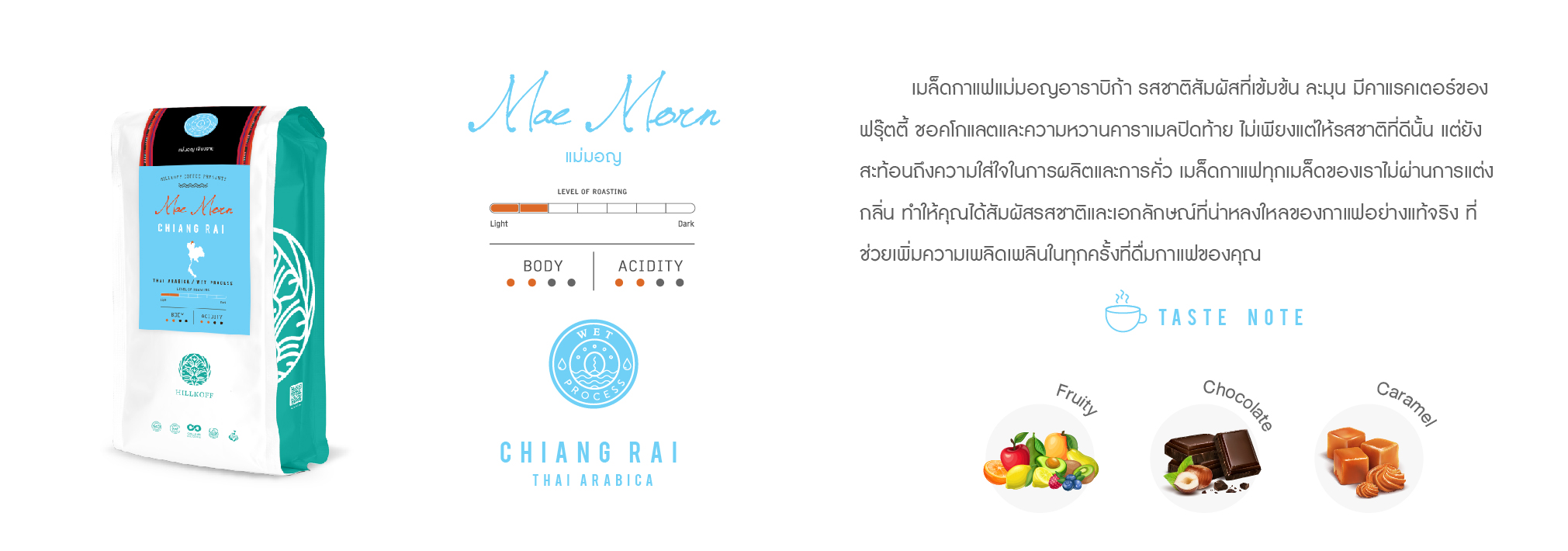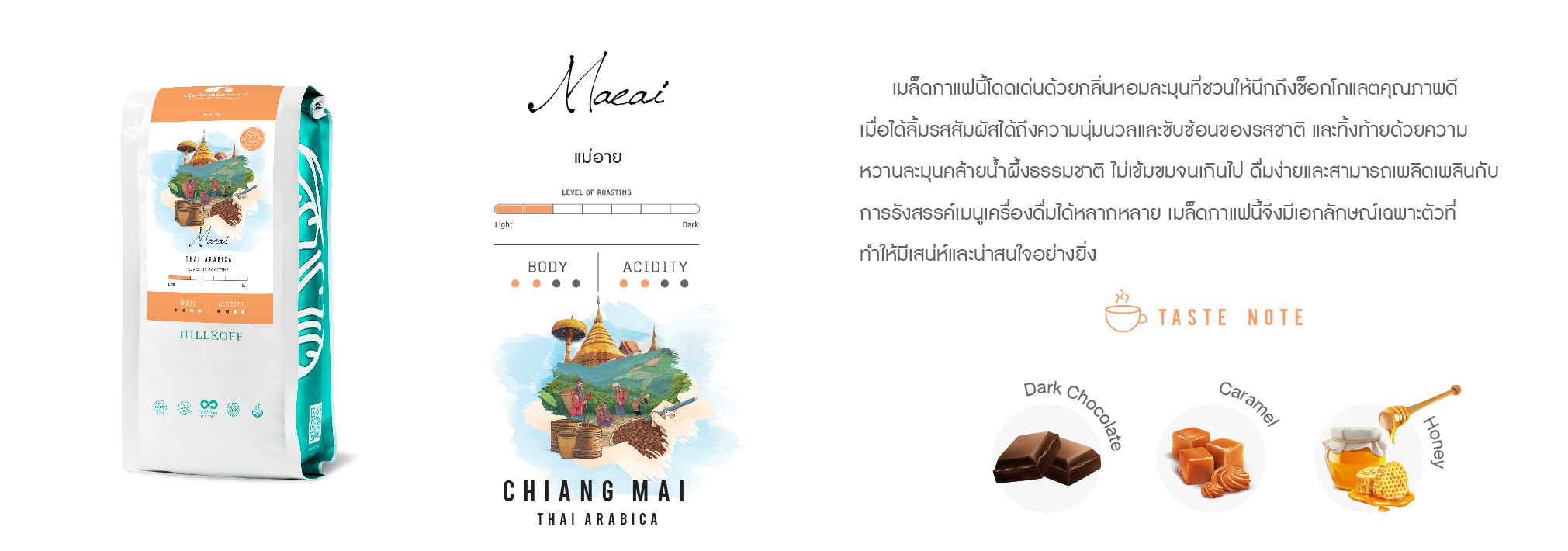 ดื่มด่ำกับความพิเศษของเมล็ดกาแฟแม่อาย ด้วยกลิ่นหอมละมุน เพียงแค่คุณได้ลิ้มรสสัมผัสก็จะรู้สึกถึงความนุ่มนวลและซับซ้อนของรสชาติ