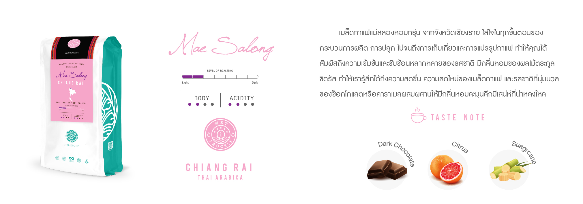เมล็ดกาแฟคั่ว แม่สลอง จังหวัดเชียงราย ได้คัดสรรอย่างพิถีพิถันของเกษตรกรในพื้นที่ รวมไปถึงใส่ใจทุกขั้นตอนกระบวนการปลูก เก็บเกี่ยว ผลิต ไปจนถึงการแปรรูป