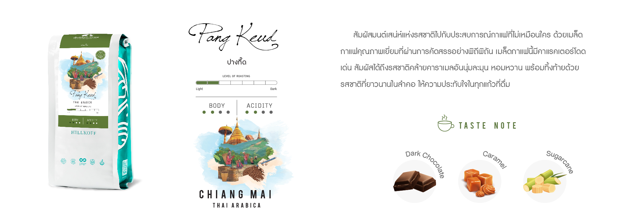 สัมผัสมนต์เสน่ห์แห่งรสชาติไปกับกาแฟปางกื๊ด ด้วยกระบวนการคั่วที่พิถีพิถัน เราได้ดึงเอาเอกลักษณ์อันโดดเด่นของเมล็ดกาแฟนี้ออกมาอย่างเต็มที่