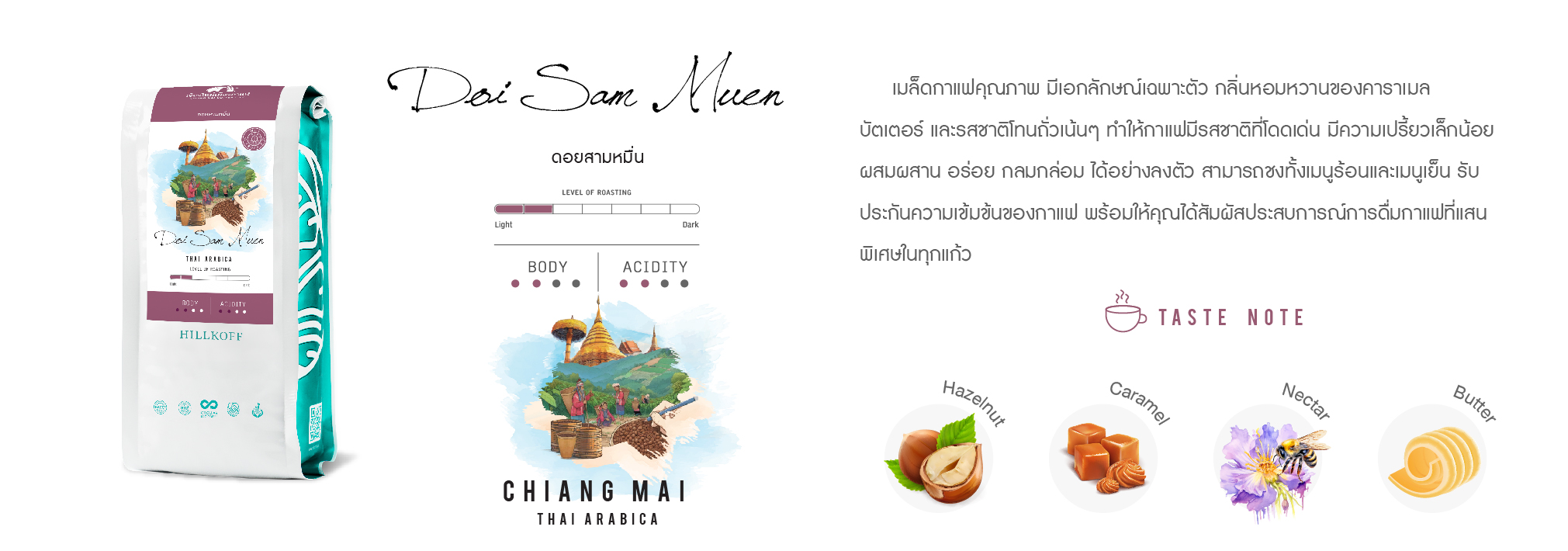 สัมผัสประสบการณ์การดื่มกาแฟที่ไม่เหมือนใครด้วยเมล็ดกาแฟดอยสามหมื่นที่ผ่านการคัดสรรคุณภาพมาอย่างดีจากแหล่งปลูกจังหวัดเชียงใหม่