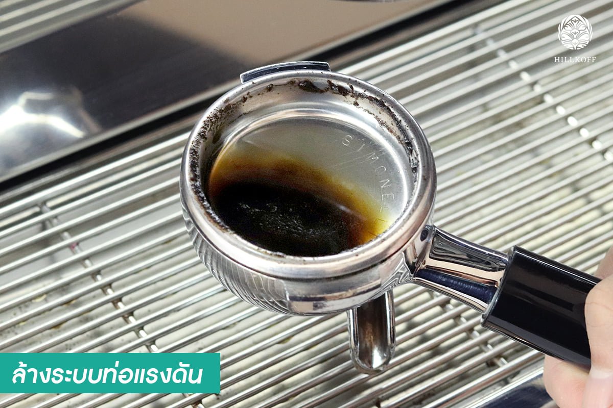 ความสำคัญของระบบแรงดันหากทำงานผิดปกติจะส่งผลรสชาติของกาแฟด้วยเช่นกัน หากแรงดันไม่คงที่การไหลของ น้ำผ่านกาแฟจะทำให้การสกัดกาแฟไม่สมบูรณ์ ทำให้คุณภาพกาแฟลดลง ในส่วนของวิธีทำความสะอาดเราล้างด้วยวิธีการที่เรียกว่า Back Flush คือการใส่ Basket แบบไม่มีรูเข้ากับก้านอัด ใส่ผงช่วยทำความสะอาด Kofex ปลายช้อนชา และใส่เข้าไปกับหัวกรุ๊ป กดปุ่มปล่อยน้ำสกัดกาแฟทิ้ง ไว้ 7 - 10 วินาที เครื่องชงกาแฟจะระบายแรงดัน ออกจากท่อระบาย ทำซ้ำ 3 รอบ