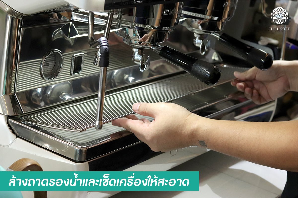 4.ล้างก้านชง Basket และถาดรองน้ำ