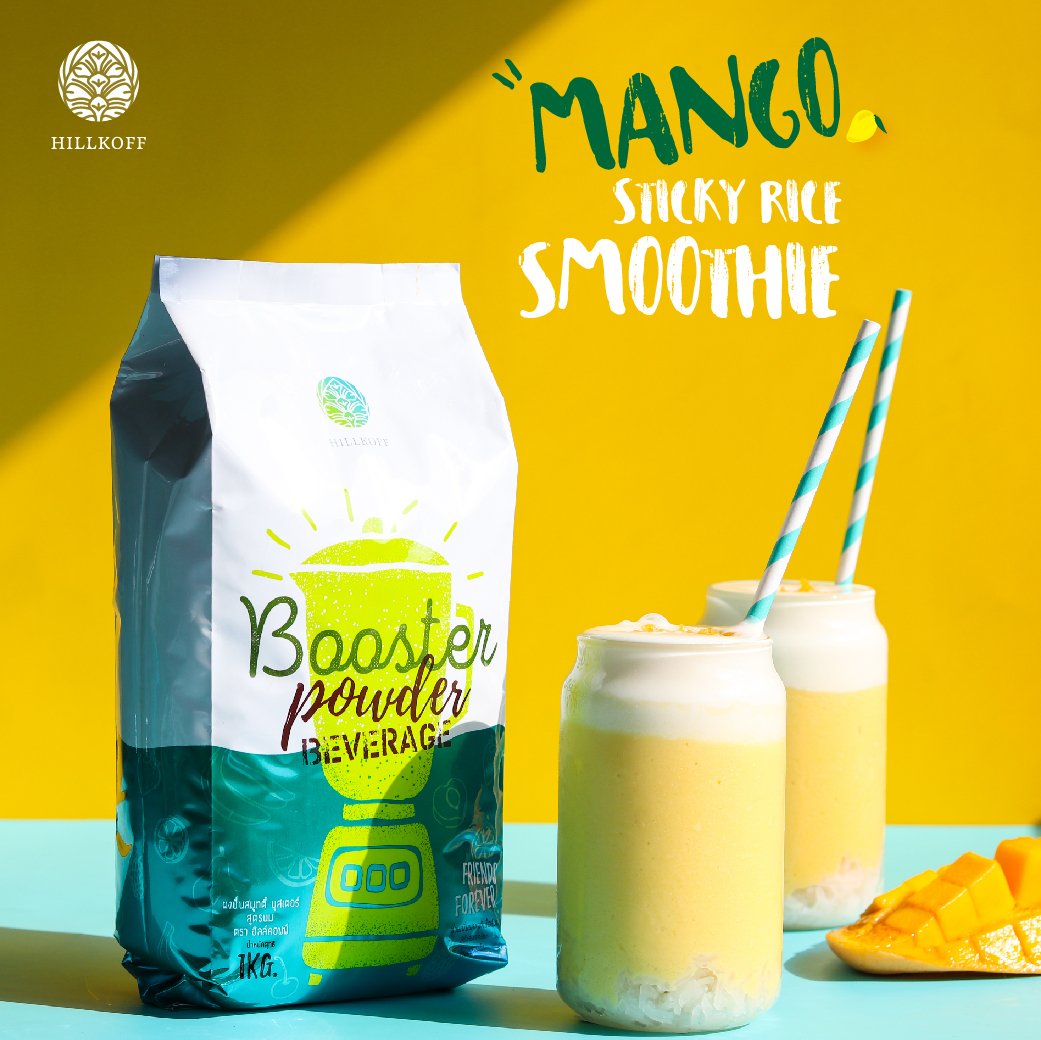 หากคุณต้องการเครื่องดื่มที่มีเนื้อสัมผัสเนียนละเอียด ละมุน ละลายอย่างช้าๆ เราขอแนะนำผลิตภัณฑ์ที่มีส่วนช่วยให้เครื่องดื่มของคุณสมบูรณ์แบบมากขึ้น นั้นก็คือ ผงบูสเตอร์ฮิลล์คอฟฟ์ (Booster Hillkoff) โดยทางฮิลล์คอฟฟ์ได้พัฒนาและคิดค้นผลิตภัณฑ์ผงบูสเตอร์สำหรับปั่นสมูทตี้ ซึ่งมีคุณสมบัติช่วยทำให้เกิดความคงตัว เนื้อสัมผัสเนียนละเอียด ชะลอการแยกชั้น เพิ่มรสชาติของเครื่องดื่มให้มีเอกลักษณ์มากยิ่งขึ้น เหมาะกับเครื่องดื่มที่มีนมเป็นส่วนผสม