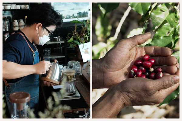คุณนฤมล อธิบายว่า นอกจากกาแฟ เรายังเป็นผู้นำเข้าและตัวแทนจำหน่ายเครื่องทำกาแฟด้วย ส่วนเมล็ดกาแฟเราทำเอง 100% จนกระทั่ง 2 ปีที่แล้วเกิดวิกฤตการเปลี่ยนแปลงสภาพภูมิอากาศ (Climate Change) ทำให้ผลผลิตเสียหายและวัตถุดิบลดลงไปเรื่อย ๆ กว่า 30-60% จากราคาเมล็ดกาแฟที่กำลังทำรายได้ที่ดีให้เกษตรกร กลายเป็นความเสี่ยงขาดแคลนวัตถุดิบ ‘ฮิลล์คอฟฟ์’ จึงเริ่มนำเข้าเมล็ดกาแฟจากต่างประเทศเข้ามาเพื่อแก้ปัญหาวัตถุดิบไม่เพียงพอ