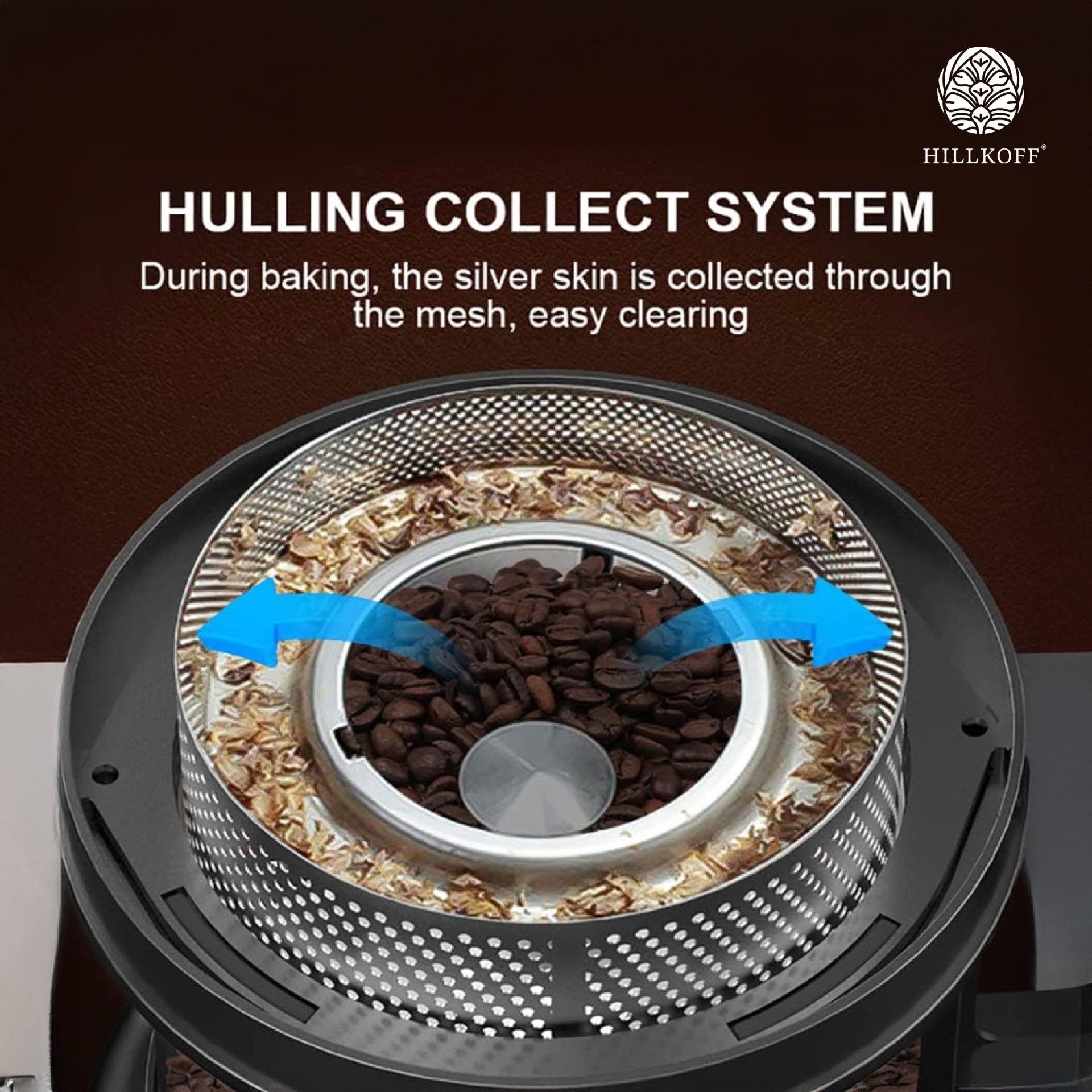 ระบบกรองเปลือกกาแฟ (Silver Skin) อัตโนมัติ เก็บเปลือกกาแฟที่ลอยออกระหว่างคั่ว ง่ายต่อการทำความสะอาด และปลอดควัน