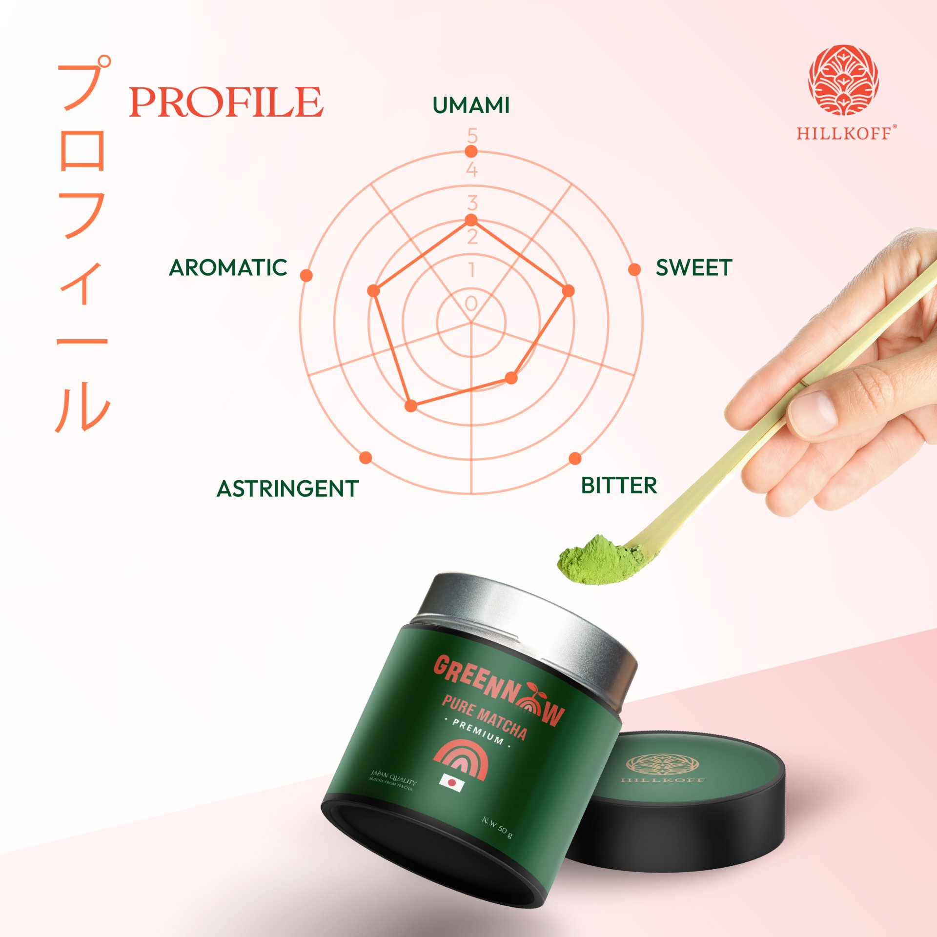 • ผงมัทฉะแท้จากญี่ปุ่น ที่ผ่านการคัดสรรอย่างพิถีพิถันตั้งแต่ต้นทางของไร่ชาจนถึงมือคุณ
