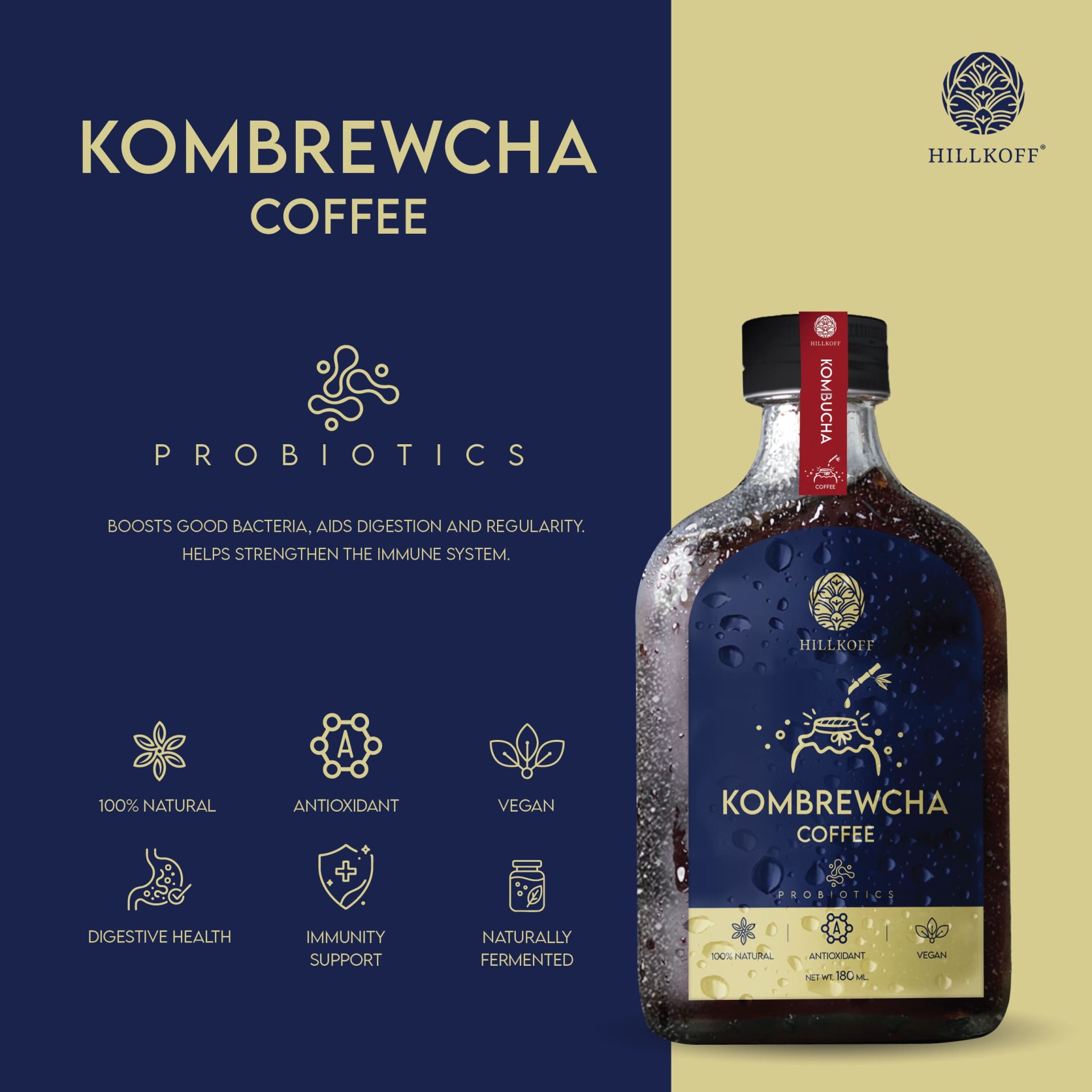 จะได้รสสัมผัสที่กลมกล่อม นุ่ม ไม่ขม และมีมิติของกลิ่นกาแฟที่แตกต่างจากคอมบูชะทั่วไปอย่างชัดเจน