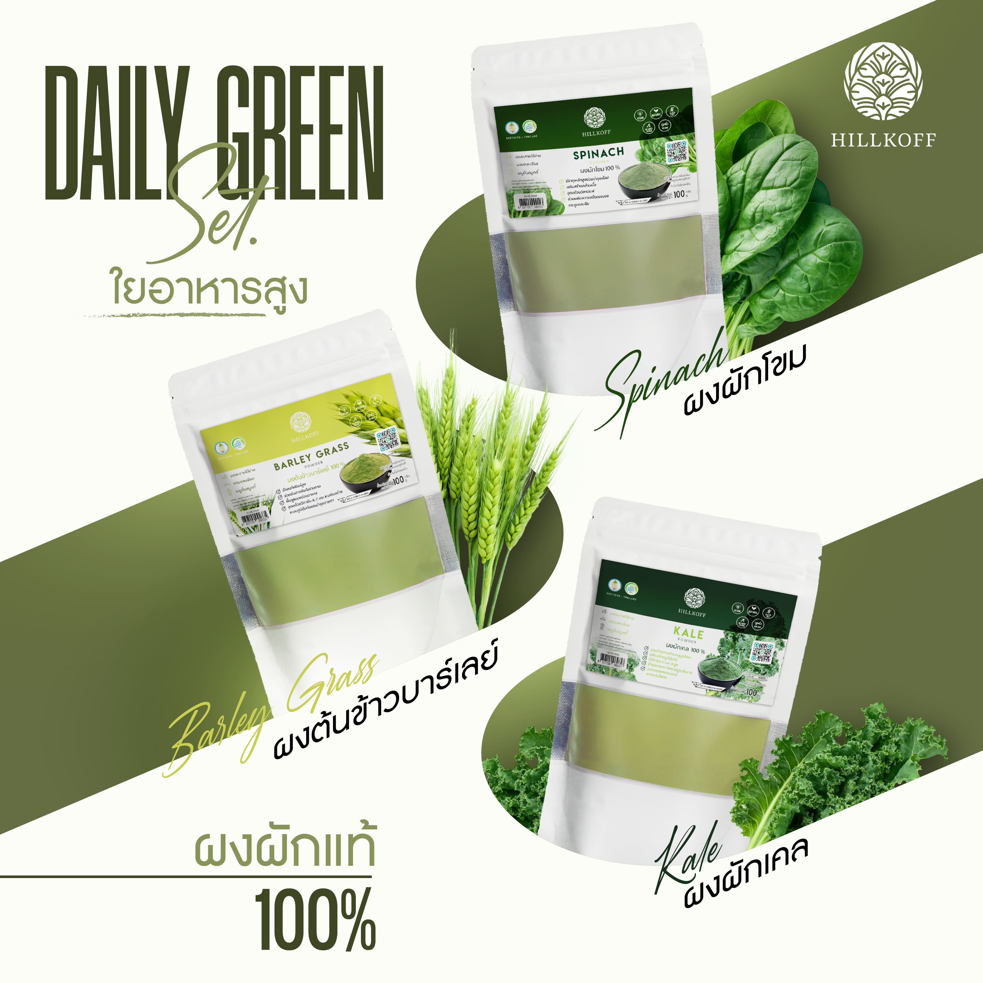 Set ผงสุขภาพ Daily Green ผงผักผลไม้ ต้นข้าวบาร์เลย์ (Barley Grass) ผักโขม (Spinach) เคล (Kale)