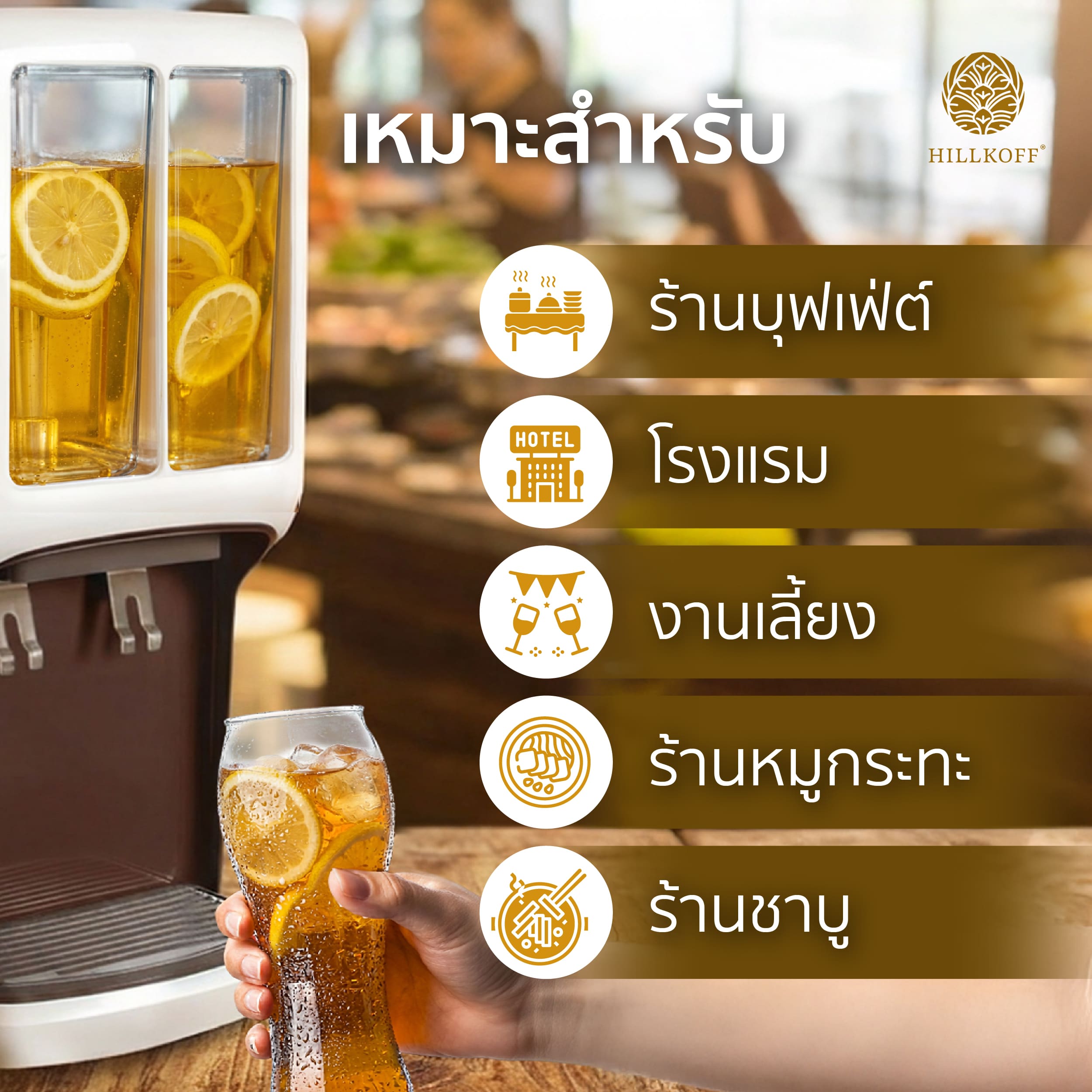 • ร้านบุฟเฟ่ต์/ร้านหมูกระทะ/ร้านชาบู: เครื่องดื่มรีฟิล (Refill) ที่ช่วยเพิ่มมูลค่าและสร้างความพึงพอใจให้กับลูกค้า
