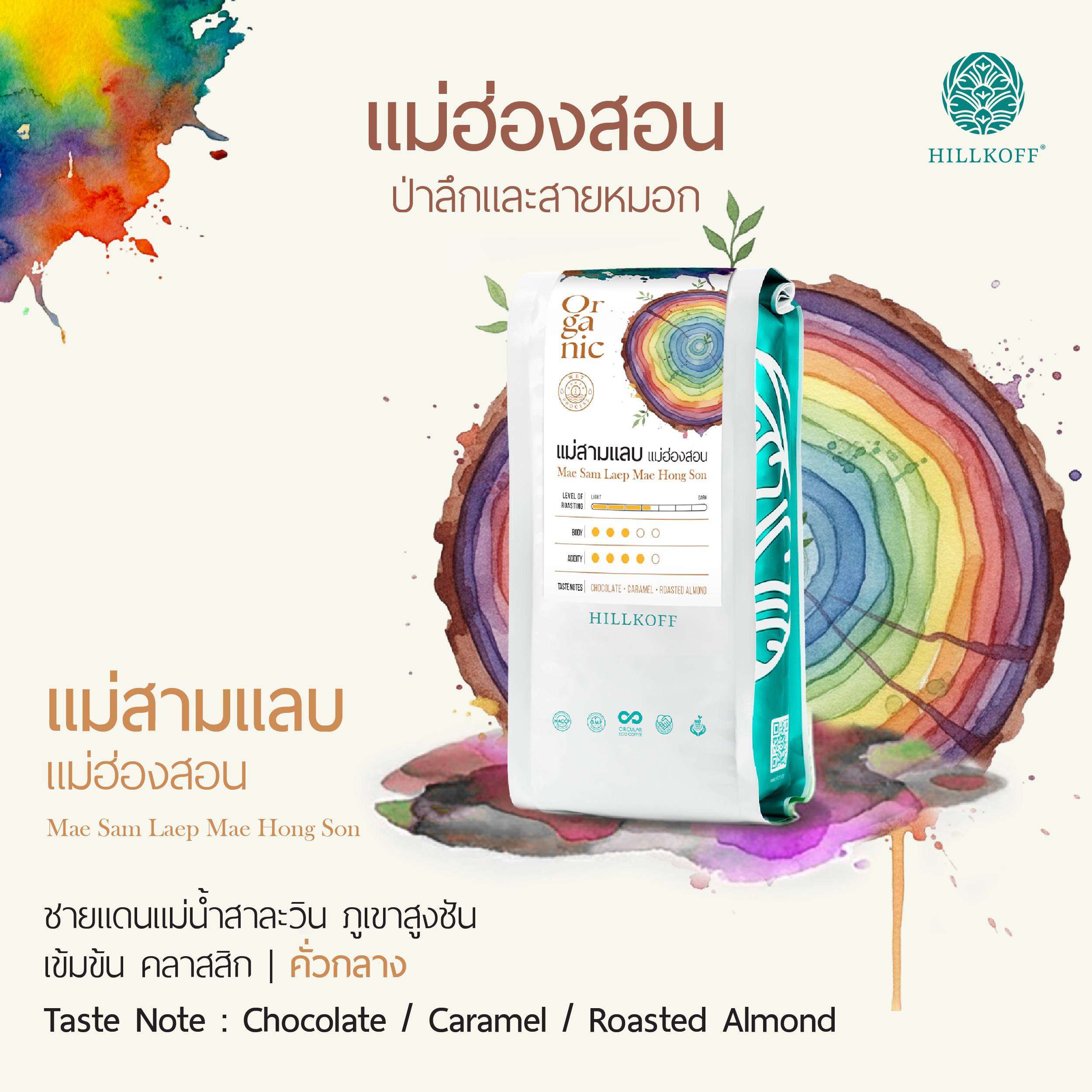 กาแฟจากชุมชนชายแดนลุ่มน้ำสาละวิน พื้นที่เป็นภูเขาที่มีหมอกลงบ่อยและลมเย็นแทบทั้งปี และผ่านกระบวนการพิถีพิถันทุกขั้นตอนกับทุกเมล็ด จึงได้กาแฟคุณภาพสูง