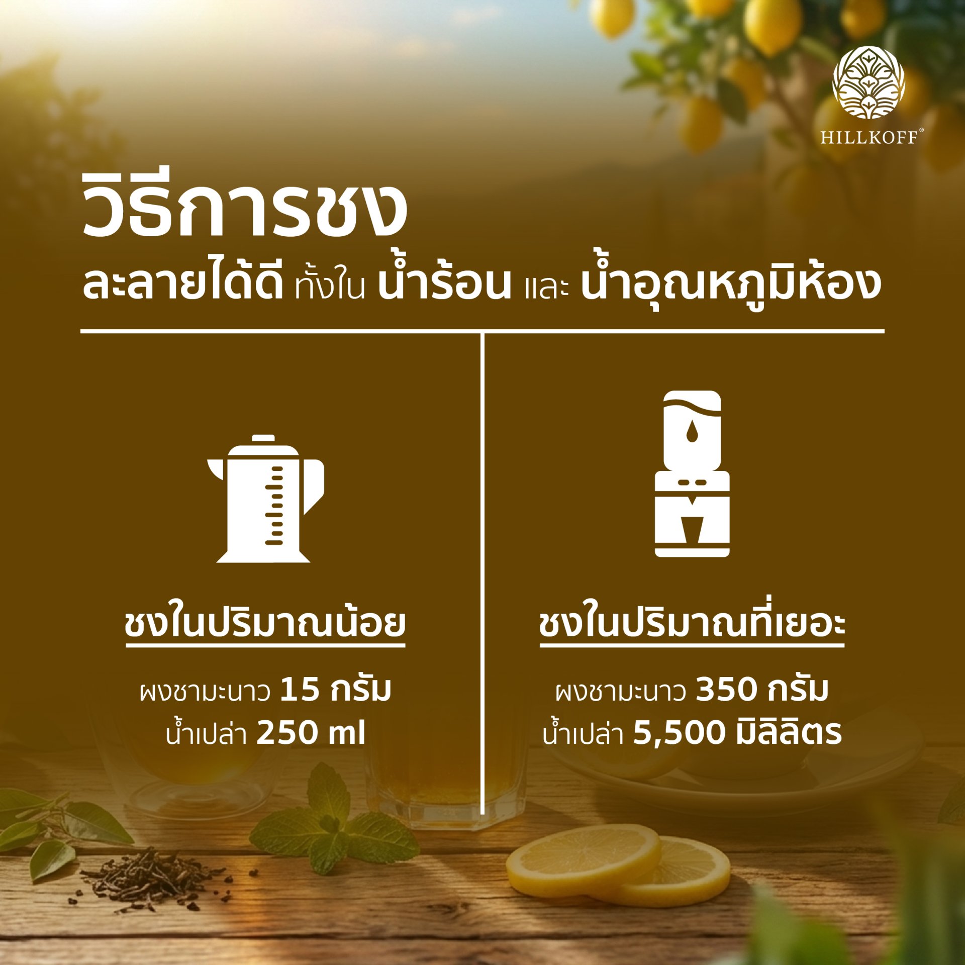 • ชาเลม่อนปรุงสำเร็จ ครบจบในถุงเดียว ไม่ต้องผสมอย่างอื่นเพิ่ม